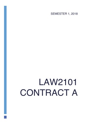 Complete notes for Contract A - Distinction TOPICS COVERED: 1. Offer 2. Acceptance 3. Consideration 4. Intention 5. Certainty 6. Formalities 7. Privity 8. Capacity 9. Estoppel 10. Express Terms 11. Implied Terms 12. Consumer and Small Business Contracts