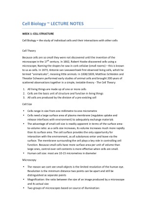 Weekly Lecture notes, topics include: - cell structure - the chemical building blocks of life - membranes - energy and metabolism - how cells harvest energy - DNA: the genetic material - how cells divide - sexual reproduction and meiosis - patterns of inheritance - chromosomes, mapping and the meiosis-inheritance connection - genes and how they work - control of gene expression - genomes and biotechnology