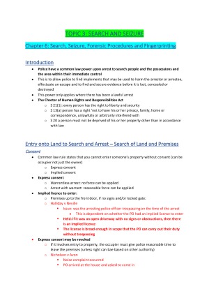 These notes cover every topic covered and assessed throughout the entirety of the unit including: Topic 1: Overview Of The Court Heirarchy And Crime Classification Topic 2: Commencement Of Criminal Proceedings Topic 3: Search And Seizure Topic 4: Fingerprinting And Forensic Procedures Topic 5: Bail Topic 6: Police Questioning Topic 7: Identification Evidence Topic 8: Trial of Indictable Offences Topic 9: The Machinery of Prosecution Topic 10: The Trial Process and Defence Pleadings Topic 11: The Jury System These notes were made using the prescribed textbook . and were also made using the lectures and the tutorial questions provided throughout the entire trimester. The notes contain both the appropriate legislation used in this unit and the appropriate cases (which are in red for easy reading and spotting in exams). This was the only thing i needed to bring into my exam which enabled me to get distinction.