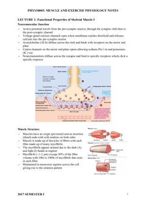 Very detailed notes on every lecture taught. All important diagrams and charts explained clearly alongside additional text. Notes include the following lectures: Functional Properties of Skeletal Muscle I Functional Properties of Skeletal Muscle II Muscle Injury Muscle Regeneration Muscle Plasticity I Muscle Plasticity II Skeletal Muscle Fatigue Ageing and Skeletal Muscle Overview of Exercise Metabolism Intracellular Signalling Hormones and Exercise Carbohydrate Metabolism During Exercise Lipid Metabolism During Exercise Protein Metabolism During Exercise Skeletal Muscle Mass: Mechanisms of Hypertrophy Skeletal Muscle Mass: Mechanisms of Atrophy Nutritional Interventions in Muscle Metabolism Growth Promoting Agents and Skeletal Muscle Inflammation Signalling in Skeletal Muscle Key Proteins in Skeletal Muscle Cancer Cachexia Oxygen Uptake During Exercise Cardiovascular Responses to Exercise Respiratory Responses to Exercise Maximum Oxygen Uptake Temperature and Fluid Balance During Exercise Physiological Determinants of Exercise Performance Gene Therapies of Neuromuscular Disorders Myogenesis: The Molecular Basis of Muscle Development Myogenesis: From Stem Cells to Muscles Transcriptional Regulation of Skeletal Muscle Stem Cells Metabolic Remodelling of Skeletal Muscle Stem Cells