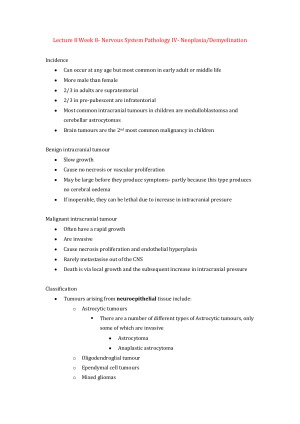 My notes cover content from Week 2-13 Week 2: Musculoskeletal 2 Week 3: The Arthritides Week 4: Connective Tissue Disorders Week 5: Fibromyalgia Week 6: Disorders of the Eye and Ear Week 7: Dermatology Week 8: Nervous System Pathology 4 Week 9: Nervous System Pathology 3 Week 10: Nervous System Pathology 5 Week 11: Neuropathology 7 Week 12: Eating Disorders Week 13: Anxiety Includes: aetiology, pathology/Pathogenesis, clinical features and epidemiology