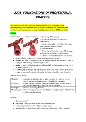 Detailed and comprehensive notes that covers all lectures and tutorials and will help you study for the exam. These notes will also help you study for your VIVA in 2202. Topics include- asthma, COPD, heart failure, myocardial infarction and acute coronary syndrome and stroke. this notes include full clinical reasoning cycles for all conditions.