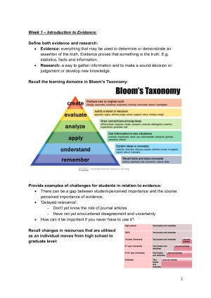 HD student notes for 400863 Foundations of Research and Evidence-based Practice. Notes include summaries of lectures and readings. Notes are based off each of the learning outcomes from that week. Topics include: - Introduction to evidence - Evidence-based practice - Formulating questions. Searching for answers - Types of research - Levels of evidence - Ethics in health - Research concepts I - Research concepts II - Academic writing - Types of analysis - Common results - Interpreting results