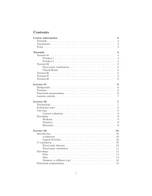 These COMP2022 notes include my raw personal lecture and laboratory notes. I received a final mark of 94 (High Distinction). Contents ------------ Course information +-- Tutorials +-- Assessments +-- Exam Tutorials +-- Tutorial 01 +-- +-- Problem 1 +-- +-- Problem 2 +-- Tutorial 03 +-- +-- Fixed point combinators +-- +-- Church-Rosser +-- Tutorial 06 +-- Tutorial 07 +-- Tutorial 08 Lecture 01 +-- Background +-- Notation +-- Functional programming +-- Lambda calculus Lecture 02 +-- Terminology +-- Evaluation order +-- Currying +-- +-- Curried evaluation +-- Encodings +-- +-- Booleans +-- +-- Numbers +-- +-- Recursion Lecture 03 +-- Introduction +-- +-- eta-reduction +-- +-- Logical Notation +-- Y combinator +-- +-- Fixed point theorem +-- +-- Fixed point combinator +-- Encodings +-- +-- Pairs +-- +-- Lists +-- +-- Numbers (a different way) +-- Functional programming Lecture 04 +-- Lambda Calculus +-- +-- Computational power +-- Automata Theory +-- +-- Background +-- +-- DFA, Deterministic Finite Automata +-- +-- Regular languages +-- +-- NFA, Non-deterministic Finite Automata Lecture 05 +-- NFA +-- DFA and DFA equivalence +-- +-- Epsilon closure +-- +-- Converting a NFA to DFA +-- Minimal DFA +-- Regular languages and Closure properties +-- +-- Regular languages +-- +-- Closure properties +-- Regular expressions Lecture 06 +-- Regular expressions (RE) +-- Equivalence of FA and RE +-- +-- Generalised NFA (GNFA) +-- +-- Converting NFA to RE +-- Proving non-regularity +-- +-- Pumping a language +-- +-- Pumping lemma +-- +-- Proving a language is not regular Lecture 07 +-- Grammars +-- +-- Context-free grammars (CFG) +-- +-- Constructing grammars +-- +-- Parsing grammars +-- +-- Clean grammars +-- +-- Types of grammar Lecture 08 +-- Push down automata (PDA) +-- Parsing +-- +-- Table-descent (table-driven) parser +-- +-- First and follow sets +-- +-- LL(1) grammars +-- +-- Transforming non-LL(1) grammars +-- +-- Proving a language is not LL(1) Lecture 09 +-- Turing machines (TM) +-- +-- Language +-- +-- Cool stuff +-- +-- Computability +-- Logic Lecture 10 +-- Tautologies, contradictions +-- Equivalence laws +-- +-- Laws of equivalence +-- +-- Transformational proofs +-- Inference rules +-- +-- Rules of inference +-- Formal proofs using the Natural Deduction System Lecture 11 +-- Inference rules: CP and IP +-- Invalidity +-- Tautologies +-- Predicate logic +-- +-- Quantifier scope +-- +-- Interpretations Lecture 12 +-- Semantics +-- Validity and satisfiability +-- Laws of equivalence +-- Inference rules +-- +-- Free to replace +-- +-- Rules Lecture 13 +-- Computability +-- Church-Turing thesis +-- Exam