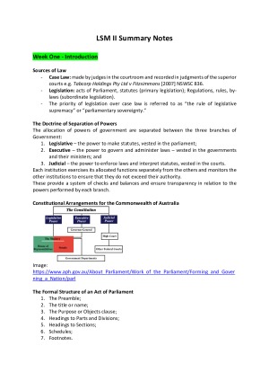 Comprehensive, colour coordinated and easy to read study notes. Topics include: Statutory Interpretation - Interpreting Subordinate Legislation - Interpreting Statutes - Researching Legislation - Problem Questions The Australian Constitution - Legal Institutions - The Australian Constitution - The Making of the Constitution - Constitution Conventions - Notes on the Constitution - Sample Constitution Questions - Australian Federalism and Constitutional Change