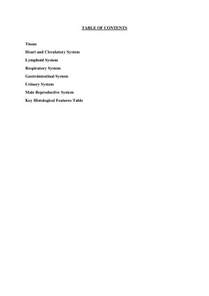 These notes are comprised of lecture information with images and a table defining the key histological features with images and important information. Topics include: Anatomy and Histology of: Tissue Heart and Circulatory System Lymphoid System Respiratory System Gastrointestinal System Urinary System Male Reproductive System