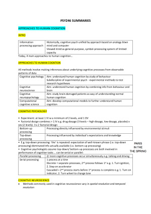 High quality summary notes covering all examinable lecture topics Topics covered: (1) Approaches to Human Cognition, (2) Working Memory, (3) Attention, (4) Visual Attention, (5) Episodic Memory, (6) Semantic Memory, (7) Concepts and Categories, (8) Word Recognition and Reading, (9) Thinking and Reasoning, (10) Language Production, (11) Cognitive Neuropsychology