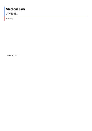 List of Topics: Module 1 - Introduction to health and medical law Module 2 - Consent to medical treatment Module 3 - Professional Liability Module 4 - Reproduction Module 5 - Withdrawal of treatment, end of life decision-making, and assisted dying Highly detailed notes incorporating readings from prescribed course materials