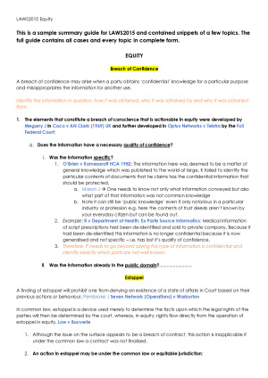 LAWS2015/LAWS5015 EQUITY Full Summary Guide 85 final exam mark