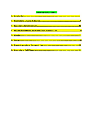Detailed notes on following topics: 1. International Law and Its Sources 2. Customary International Law 3. Relationship between International and Australian Law 4. Whaling 5. Assange 6. Private International Commercial Law 7. International Child Abduction
