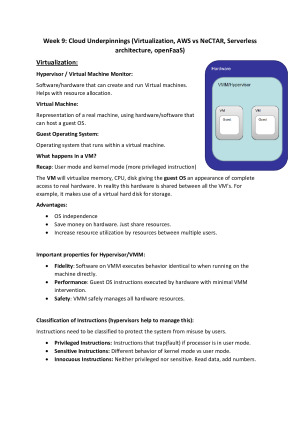 H1 domestic student notes. I got 85% for this subject. These notes are extremely easy to read and simple to memorise. The notes are broken up into sections covering all key concepts taught in this subject. Images and and bold titles are included throughout the document for easy reading. TOPICS COVERED: *Cluster Computing: Elements of parallel and distributed computing, cluster systems architecture, resource management and scheduling, single system image, parallel programming paradigms. *Utility Computing: Foundations and grid computing technologies. *Cloud Computing: Cloud platforms, Virtualization, Cloud Application Programming Models (Task, Thread, and MapReduce), Cloud applications, and future directions in utility and cloud computing. *Big Data: "Big data" processing and analytics in distributed environments.