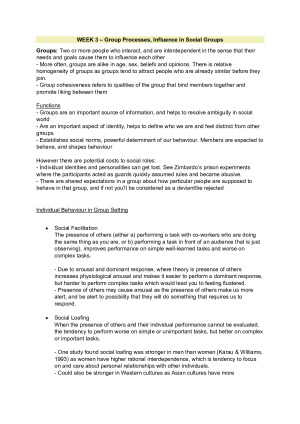 Comprehensive PSY2042 notes covering ALL the topics from the lectures and also the prescribed textbook readings. Good summarised info of all content you will need to learn for the assessments within semester. TOPICS: - Introduction to social psychology - Social identity and social attribution - Group dynamics and intergroup behaviour - Prejudice, discrimination and prosocial behaviour - Attitudes and attitude change - Attraction and aggression - Introduction to personality psychology and psychodynamic theory - Self concept and self processes - Learning theories - Trait theories - Biological theories - Culture and personality