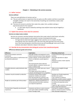 I used these notes both for both the assignments and end of semester exam. I completed all the readings for this unit - so you don't have to. This unit is relatively straight-forward but still contains a decent amount of content. You need to be aware of the key terminology and theories in order to succeed. I have ensured these notes are comprehensive but succinct, so as to make sure you are only learning relevant content, and not wasting time on topics on which you will not be assessed. By learning the core concepts in these notes and being able to apply them to examples, you will be well on the way to achieving a HD in this unit. TOPICS INCLUDED: 1. Marketing in the service economy (Ch 1) 2. Customer behaviour, culture and service encounters; Positioning services in competitive markets (Ch 2-3) 3. Managing relationships and building loyalty (Ch 13) 4. Developing service products: core and supplementary service elements; Distributing services through physical and electronic channels (Ch 4-5) 5. Understanding costs and developing pricing strategies (Ch 6) 6. Balancing productive capacity and demand (Ch 7) 7. Managing people for service advantage (Ch 9) 8. Crafting the service environment (Ch 10) 9. Customer satisfaction and service quality (Ch 12) 10. Handling customer complaints and managing service recovery (Ch 14)