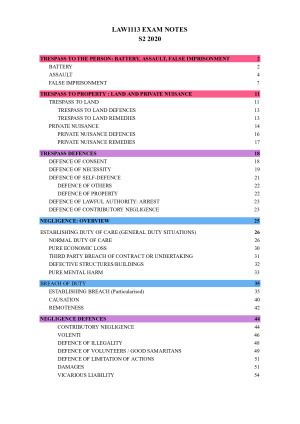 LAW1113 TORT LAW - HIGH SCORING EXAM NOTES DISTINCTION