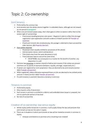 Well formatted, very comprehensive, easy to follow HD exam notes for LAW3402 Property B. INCLUDES: all relevant legislation, case summaries and substantive information from all lectures and readings per the semester 2 2019 reading guide. Topics covered (each has relevant sub-topics): *Equitable interests arising by operation of law *Co-ownership *Mortgages *An introduction to the enforceability of property interests and the Torrens system *The principle of indefeasibility of title *Exceptions to indefeasibility of title *Unregistered interests under the Torrens system