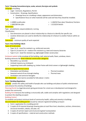 High quality notes for everything covered in Construction of Residential Buildings (ABPL20042). Excellent tool for catch-up study and final revision to secure H1. Produced by a H1(91) student who achieves H1 for all level 2 subjects and wins Deans List Honours. - Cover all examinable topics - Easy to understand - Highlighted key concepts - Summarized dot points Topics Include: 1. Drawing Conventions 2. How Buildings Work 3. Building Regulations 4. The Residential Building Industry 5. History of Australian Homes 6. Loads on structure 7. Beams and Columns 8. Site Analysis and Foundations 9. Footings 10. Concrete and Reinforcement 11. Timber 12. Floor 13. Wall 14. Roof 15. Stairs and Windows 16. Internal finishes 17. Services 18. Solar Energy