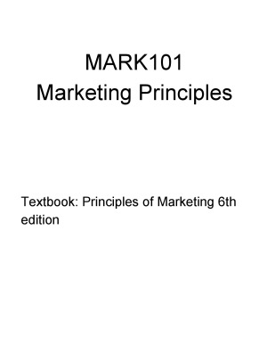 MARK101 notes covering all lectures & chapters 1 - 13 in the textbook - Principles of Marketing 6th edition. Very comprehensive and easy to follow.