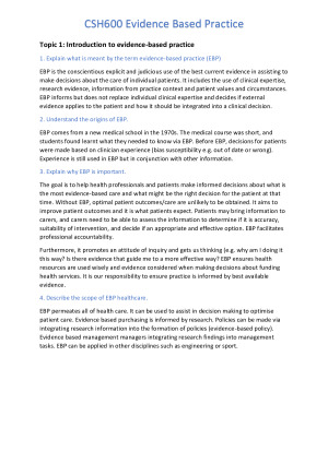 Notes cover key learning areas and consist of questions and statements with regards to unit content topics including: -Introduction to evidence based practice -How much evidence do we need? – background information and study types -Methods and finding the evidence - Does the intervention work – evidence about effects of interventions -Systematic Reviews -Evidence about diagnosis -Evidence about prognosis -Shared decision making -Embedding evidence-based practice into routine clinical care: how do I used what I have learnt in my everyday clinical practice?