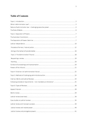 Achieved a High Distinction in this subject. The Table of Contents is very comprehensive and can be seen by clicking on the "sample notes" button. These notes are derived from multiple sources (such as lecture notes, readings, key cases, legislation and textbooks).