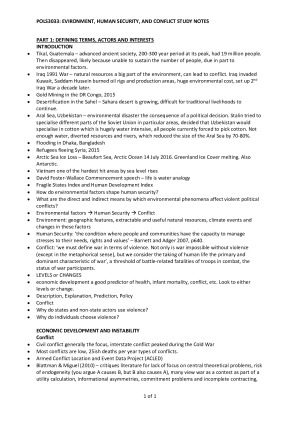 POLS3033 Environment, Human Security and Conflict Study Notes