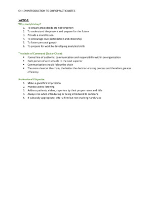the topics covered are; epistemology history of the profession attributions and challanges facing the profession the world of the chiropractor chiropractic hostory in context australian chiropractic history the culture of chiropractic subluxations interprofessional relations in the medical area inquiiries into chiropractic modes of care there is 14 weeks worth of notes