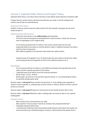 Notes cover all lectures covered in the course including: Expected Utility Theory Prospect Theory Heuristics and Biases Present Biased Preferences Saving for retirement Sub-optimal Spending Overconfidence Investment mistakes/ the Disposition Effect Managerial Decision Making Market efficiency