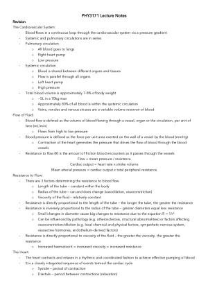 Entire 12 weeks' worth of notes compiled from lectures, tutorials, prescribed textbook and further research including pre-unit revision - Pre-unit revision - Regulation of the cardiovascular system by nerves and hormones - What is hypertension? - Role of the kidneys in long-term BP regulation - Cerebral blood flow and stroke - Global cardiovascular disease - Endothelial control of blood flow - Sex differences in cardiovascular disease - Cardio-oncology - Heart failure - Early origins of cardiovascular disease - Kidney disease - Atherosclerosis I received a HD in this subject using these notes and hopefully you can too!