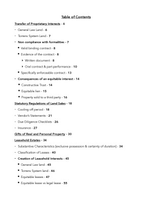 Comprehensive notes for the Property A exam! Using these notes enabled me to achieve an 87 for the subject! The notes cover all essential topics for the exam including: - Transfer of Proprietary Interests - Statutory Regulations of Land - Gifts of Real and Personal Property - Leasehold Estates - Easements - Restrictive Covenants - Mortgages The notes are organised in a coherent and logical manner with subheadings, bolding and numbering. All relevant cases and legislation from reading guide are referenced and the important principles provided. Furthermore, the notes include detailed templates (including introduction and conclusion) for topics such as lease vs license, covenants of quiet enjoyment/non derogation from grant, easements and restrictive covenants. These templates allow for the particular facts in the scenario to be slotted into the sentences ensuring that time can be effectively spent identifying materials facts and formulating cogent arguments. See other listing: Property A HD (90) Test Notes