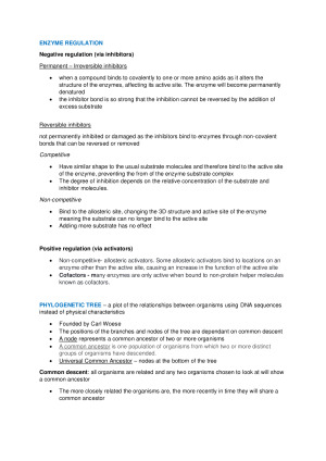 detailed and concise notes that cover all weekly topics and workshop basics. They are simplified exceptionally well and summarise all the knowledge needed for the final exam. Contents include: Contents ATOMS, MOLECULES 4 CHARACTERISTICS OF LIVING ORGANISMS ORGANIC MOLECULES STRUCTURE OF PROTIENS ENERGY ENZYMES CELL MEMBRANE MICROBE ADAPTION THE ENDOMEMBRANE SYSTEM PHOTOSYNTHESIS METABOLISM BACTERIAL REPRODUCTION - BINARY FISSION CELL CYCLE GENETIC TERMS TRANSCRIPTION THE LAC OPERON TRANSLATION Heidy Weinberg equilibrium APOPTOSIS