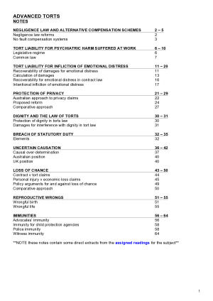 HD exam notes for the Monash advanced torts unit. Includes a table of contents and summaries of cases in the unit. All references to cases are coloured orange, references to legislation are coloured green and references to secondary sources are coloured blue. Includes some extracts from the required readings for the unit.