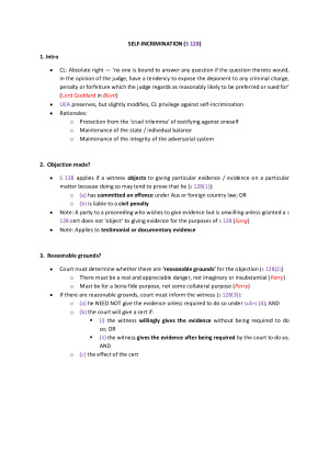 Evidence can be tricky, but these exam notes break each of the topics down into checklists to make your life easier! Very clear and concise, whilst covering all possible scenarios that may appear on the exam. These exam notes cover all the legislation, cases and other material referred to in the reading guide. I made sure to check my notes against authorities such as the Judicial College of Victoria to ensure their accuracy. I scored 100% on the written submissions about coincidence evidence and res gestae, 90% on the oral submissions and a HD in the exam. The following topics are covered: Topic 1: Introduction Topic 2: Relevance, Discretionary And Mandatory Exclusions And Leave Topic 3: Competence And Compellability Topic 4: Privilege Topic 5: Examination Of Witnesses Topic 6: Character And Credibility Topic 7: Accused’s Right To Silence Topic 8: Tendency, Coincidence And Res Gestae Topic 9: Hearsay Topic 10: Admissions Topic 11: Improperly and Illegally Obtained Evidence Topic 12: Opinion Evidence