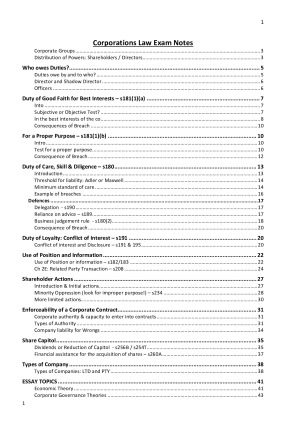 H1 Corporations Law Exam Notes - Previous STS Tutor