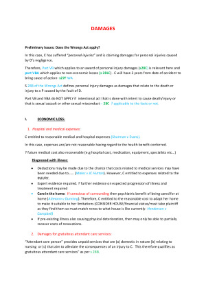 Damages Duty of Care Breach of duty Causation Remoteness Pure mental harm/psych injury Omissions Defenses to negligence Breach of statutory duty Vicarious/proportionate liability All cases to cite in brackets, pre-written answers. Got a 90 on this exam