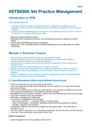 FULL VETS6308 Veterinary Practice Management Notes