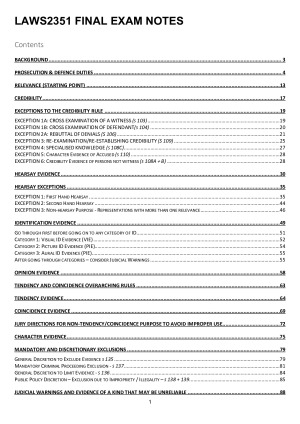 Contents BACKGROUND 3 PROSECUTION & DEFENCE DUTIES 4 RELEVANCE (STARTING POINT) 13 CREDIBILITY 17 EXCEPTIONS TO THE CREDIBILITY RULE 19 EXCEPTION 1A: CROSS EXAMINATION OF A WITNESS (S 103) 19 EXCEPTION 1B: CROSS EXAMINATION OF DEFENDANT(S 104) 20 EXCEPTION 2A: REBUTTAL OF DENIALS (S 106) 21 EXCEPTION 3: RE-EXAMINATION/RE-ESTABLISHING CREDIBILITY (S 109) 25 EXCEPTION 4: SPECIALISED KNOWLEDGE (S 108C) 27 EXCEPTION 5: CHARACTER EVIDENCE OF ACCUSED (S 110) 28 EXCEPTION 6: CREDIBLITY EVIDENCE OF PERSONS NOT WITNESS (S 108A + B) 28 HEARSAY EVIDENCE 30 HEARSAY EXCEPTIONS 35 EXCEPTION 1: FIRST HAND HEARSAY 35 EXCEPTION 2: SECOND HAND HEARSAY 44 EXCEPTION 3: NON-HEARSAY PURPOSE - REPRESENTATIONS WITH MORE THAN ONE RELEVANCE 46 IDENTIFICATION EVIDENCE 49 GO THROUGH FIRST BEFORE GOING ON TO ANY CATEGORY OF ID 51 CATEGORY 1: VISUAL ID EVIDENCE (VIE) 52 CATEGORY 2: PICTURE ID EVIDENCE (PIE) 54 CATEGORY 3: AURAL ID EVIDENCE (PIE) 55 AFTER GOING THROUGH CATEGORIES – CONSIDER JUDICIAL WARNINGS 55 OPINION EVIDENCE 58 TENDENCY AND COINCIDENCE OVERARCHING RULES 63 TENDENCY EVIDENCE 64 COINCIDENCE EVIDENCE 69 JURY DIRECTIONS FOR NON-TENDENCY/COINCIDENCE PURPOSE TO AVOID IMPROPER USE 72 CHARACTER EVIDENCE 75 MANDATORY AND DISCRETIONARY EXCLUSIONS 79 GENERAL DISCRETION TO EXCLUDE EVIDENCE S 135 79 MANDATORY CRIMINAL PROCEEDING EXCLUSION - S 137 81 GENERAL DISCRETION TO LIMIT EVIDENCE - S 136 84 PUBLIC POLICY DISCRETION – EXCLUSION DUE TO IMPROPRIETY / ILLEGALITY – S 138 + 139 85 JUDICIAL WARNINGS AND EVIDENCE OF A KIND THAT MAY BE UNRELIABLE 88 UNRELIABLE EVIDENCE – CHILD WITNESSES 91 DELAY IN PROSECUTION – FORENSIC DISADVANTAGE 93 WITNESS IN THE BOX: COMPETENCE AND COMPELLABILITY 96 EVALUATING WITNESSES 99 RULES RELATING TO CROSS-EXAMINATION OF WITNESSES 100 EXAMPLES 100 THE LYING WITNESS: CROSS-EXAMINING YOUR OWN WITNESS 103 CROSS EXAMINATION: LEADING QUESTIONS 107 IMPROPER QUESTIONS 109 THE RULE IN BROWNE V DUNN 112 RE-OPENING THE PROSECUTION CASE 115 THE ACCUSED IN COURT - RIGHT TO SILENCE, ACCUSED’S LIES (INC. DIRECTIONS A JUDGE CAN GIVE) AND JOINT TRIALS 117 COMPETENCE AND COMPELLABILITY 117 RIGHT TO SILENCE 117 THE ACCUSED’S LIES 119 JOINT TRIALS 120 LEAVE PROVISION 121
