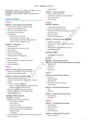 Modules 1 to 6 of PSY4151 Save time. Hundreds of pages of textbook, video and lecture content condensed to 67 pages. Detailed notes summarising key terms, concepts and discussion points from all required content including: - Video lectures - Moodle content - Key terms defined - Additional research and notes to clarify concepts Prescribed textbook: Vaughan, G. M., Hogg, M. A., Maltby, J., Day, L., & Macaskill, A. (2016). Personality and social psychology (custom publication). Sydney, Australia: Pearson Australia.
