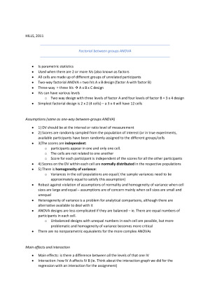 Readings from Hills - topics include: ANOVA ANCOVA MANOVA Reading from Flick - topics: Secondary Data Readings from Creswell (2009) Chapter 10 - topic: Influences of design procedures Readings from Lipsey Wilson (2001) Chapter 1 - Topic: Meta-analysis Lecture and tutorial notes - Qualitative includes: Ethnography Grounded theory Discourse Analysis Secondary and documentary data analysis Mixed methods