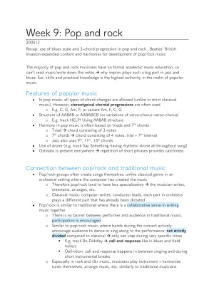 Detailed H1 notes for World Music Choir lectures, with in-depth preparations for the two theory tests + the final listening test, for which I got 88% overall. Weeks 1 & 2: Terms, intro to Africa Week 3: European music, dissonance and consonance Week 4 & 5: Pygmy, rock + pop music Week 6: Roots of rock and pop Week 7: Listening test preparation seminar (fully detailed with individual analyses for each track played) Week 8 & 9: Differences between pop and rock Week 10: Eastern and Western Georgian polyphony Week 11: Full listening test preparations, including all potentially examinable African, Georgian, Pop, and Rock tracks Tracks analysed include Pygmy song, Wagogo honey collecting, East Georgian table, West Georgian table, Toto's Africa, George Harrison's Got My Mind Set On You, Beatles' Can't Buy Me Love, Spiderbait's Black Betty, Metallica's Enter Sandman, Led Zeppelin's Black Dog, Van Halen's Dreams, Boston's More Than A Feeling, Paul McCartney's Birthday.