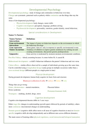 Notes summarising all the important content from the course with beautiful, clear homemade diagrams. Easy to read and well-explained. These are the notes you want if you haven't watched all the lectures and missed a bunch of tutorials. Key words are in a different colour for last minute cramming or mid exam scanning (if it's open book) Covers developmental psychology, health psychology, social psychology, organisational psychology, perception, cognitive processes, tutorials and stats. Tutorials on the Research Report are not summarised here.