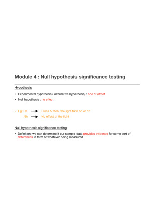 Summary of the research methods modules and there are some Chinese interpretations My notes contained some diagrams to make revision easier Topics included: Inference, Typical and Extreme scores, The distribution of sample means, Null hypothesis significance testing, The single sample z-test, The single sample t-test