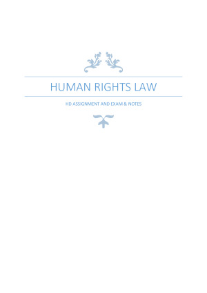 High Quality | Notes Compiled From Week 1-11. Notes are simplified, Colour Coded | Highly Accessible Step-by-Step Application of Case law and Statues Cases are summarised and key findings outlined. Policy Issues Summarised (Great for Assignments ) These notes are all you need to pass Human Rights Law with flying colours. Topic 1: The international bill of human rights Topic 2: Concepts of 'Human Rights' Topic 3: Civil and Political Rights Topic 4: Economic Social and Cultural Rights Topic 5: International Law & United Nations Charter Bodies Topic 6: The Treaty System Topic 7: The Australian Position Topic 8: Children (focus topic) Topic 9: Refugees & Stateless Persons Topic 10: Animal Rights