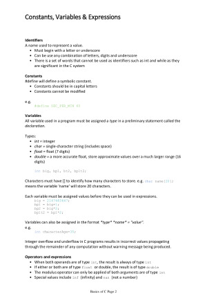 This note set covers the full subject of COMP10002 – Foundations of Algorithms for the 2020 Semester 2 Curriculum, including all covered concepts. The content of these notes were derived from the textbook, lecture notes, lecture recordings, workshop/tutorial content and examples. These notes include: - Easy to read code and clear examples in correct C syntax and font of all concepts - Numerous example programs with personalised comments that aid in understanding - Comprehensible diagrams for algorithms such as searching and sorting - Summary tables that compare the concepts taught - Clear separation and format of concepts into topics and sections - Hyperlinked bookmarks of sections that can be easily navigated if opened with a PDF reader software The main topics covered include (but are not limited to): - Basics of C programming (variables, conditions, iterations, functions, recursion) - Advanced functions - Arrays and pointers - Strings (characters and string library functions) - Structures and lists - Dynamic memory - String algorithms (pattern searching, indexing, sorting) - Algorithms (correctness and performance measurements, searching, sorting) - Dictionaries and data structures - Text and binary files including their associated functions - Integer representations in programming (binary, bits, floats) - The C preprocessor These notes helped me obtain an H1 in COMP10002: Foundations of Algorithms. They are perfect for both cramming and continuous study throughout the subject. The topics are covered in mostly the same order as they are covered in lectures, and is succinct and compact. All information included is relevant and important for the exam.