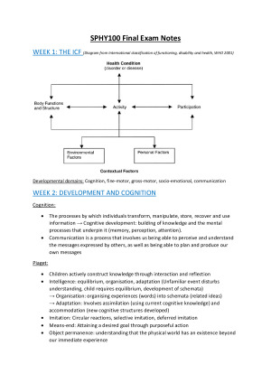 Week 1: The ICF Week 2: Development and cognition Week 3: Child development Week 4: Children 0-2 years Week 5: Children 2-5 years Week 6: Collecting and analysing data Week 7: Primary school years Week 8: Literacy development Week 9: Adolescents and adults Week 10: Older adults Week 11: Communication difference