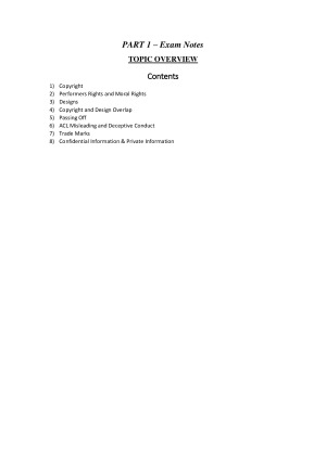 I finished this subject in Sem 1 2020 with a 85 HD Grade. These notes were specifically designed in a step-by step checklist format for the purpose of answering exam style questions. You will save so much time preparing for your exam by purchasing these notes as they cover all the content covered during the course and can be used directly in the final exam. These notes are invaluable for revision. You will not be disappointed with your purchase. The notes cover every topic of the course, including: Copyright Performers Rights and Moral Rights Designs Copyright and Design Overlap Passing Off ACL Misleading and Deceptive Conduct Trade Marks Confidential Information & Private Information