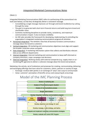 Topics include: - Introduction to IMC - IMC in the Marketing Process - Perspectives on Consumer Behaviour - Communication Process - Planning, Insights & Analytics - Creative Strategy - Media Planning & Strategy - Advertising (Broadcast, Print & Support) Readings: Chs 11 & 13 (Belch etal) - PR and Publicity - Sales promotion, Direct Marketing and Personal Selling - Campaign Effectiveness & Issues in Advertising