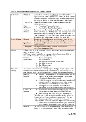I have achieved 91 on this subject and 98 on investment (my notes for investment are available on this website as well). This note is highly condensed and fully summarized, including both materials from lecture slides and textbook readings. An excel link was provided on the first page of this note which has three well-constructed models to help you with Questions on Binomial, BSM, and Greeks. Topics included: 1. Introduction to Futures Market 2. Futures and Hedging 3. Futures Markets Pricing I & II 4. Introduction to Options and Basic Operation 5. Trading Strategies Involving Options 6. Binomial Model 7. Early Exercise of American Options 8. Black, Scholes & Merton Model (BSM) 9. The Greeks