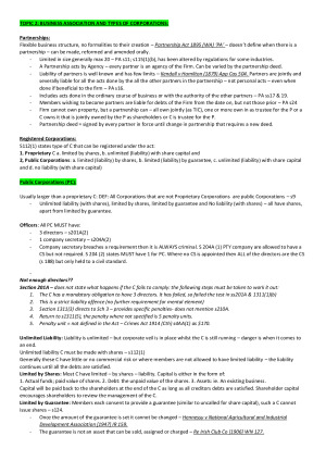 Very detailed and clear full unit notes including the topics; TOPIC 2: BUSINESS ASSOCIATION AND TYPES OF CORPORATIONS TOPIC 3: BUSINESS ASSOCIATIONS TOPIC 4: INCORPORATION TOPIC 5: ACTING WITHOUT A BODY: TOPIC 6: OFFICERS. TOPIC 8:**MEMBERS (MINORITY) REMEDIES** EXAM QUESTION TOPIC 9: CAPITAL: SHARE AND LOAN CAPITAL: TOPIC 10: CONSTITUTIONS: TOPIC 11: MEETINGS (BOARD AND MEMBERS) TOPIC 12: WINDING UP