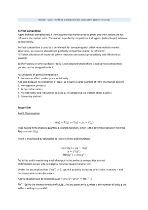 HD Notes for Industrial Organisation And Regulation! This unit is content and maths heavy and I hope these notes will help your understanding in the unit. These notes have a combination of theoretical notes plus the workings out of how to do the maths for the unit. The content in these notes include: - History of Industrial Organisation and Regulation - Perfect Competition and Monopoly Pricing - Price Discrimination and Bundling - Oligopoly - Product Differentiation - Innovation and Patents - Horizontal Mergers - Collusion and Cartels - Entry deterrence and exclusive dealing - Vertical Integration - Vertical Restraints