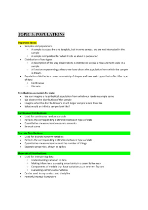 These notes cover the full subject of SCIE20001: Thinking Scientifically for 2020 Semester 1. The content of these notes was sourced from lectures, modules, assignments, readings and weekly quizzes. • Definitions highlighted • Components tested in weekly quizzes are highlighted in a separate colour • Concepts are described • Each topic is on a new page These notes helped me to achieve a H1 in this subject and keep up with the course. If I did this subject again I would purchase notes as it took a long time to write them out. There's a lot of content to learn and hopefully, I can help. I obtained a 92 for this subject and used these notes to learn and revise the subject. Topics Covered: • Design • Examing Variation • Visualising Data • Samples • Populations • Sampling Distributions • Inference and Confidence Intervals • Inference with P-values