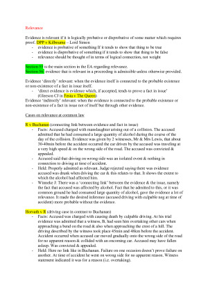 Please note that this only covers the topics that were assessable in the evidence exam this includes: relevance, hearsay, opinion, tendency/coincidence, credibility, character.